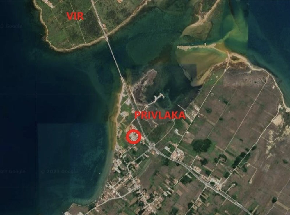Lokalizácia apartmánu žiarskeho primátora v Chorvátsku, Privlaka pri ostrove Vir / zdroj: katastrálna mapa Chorvátsko