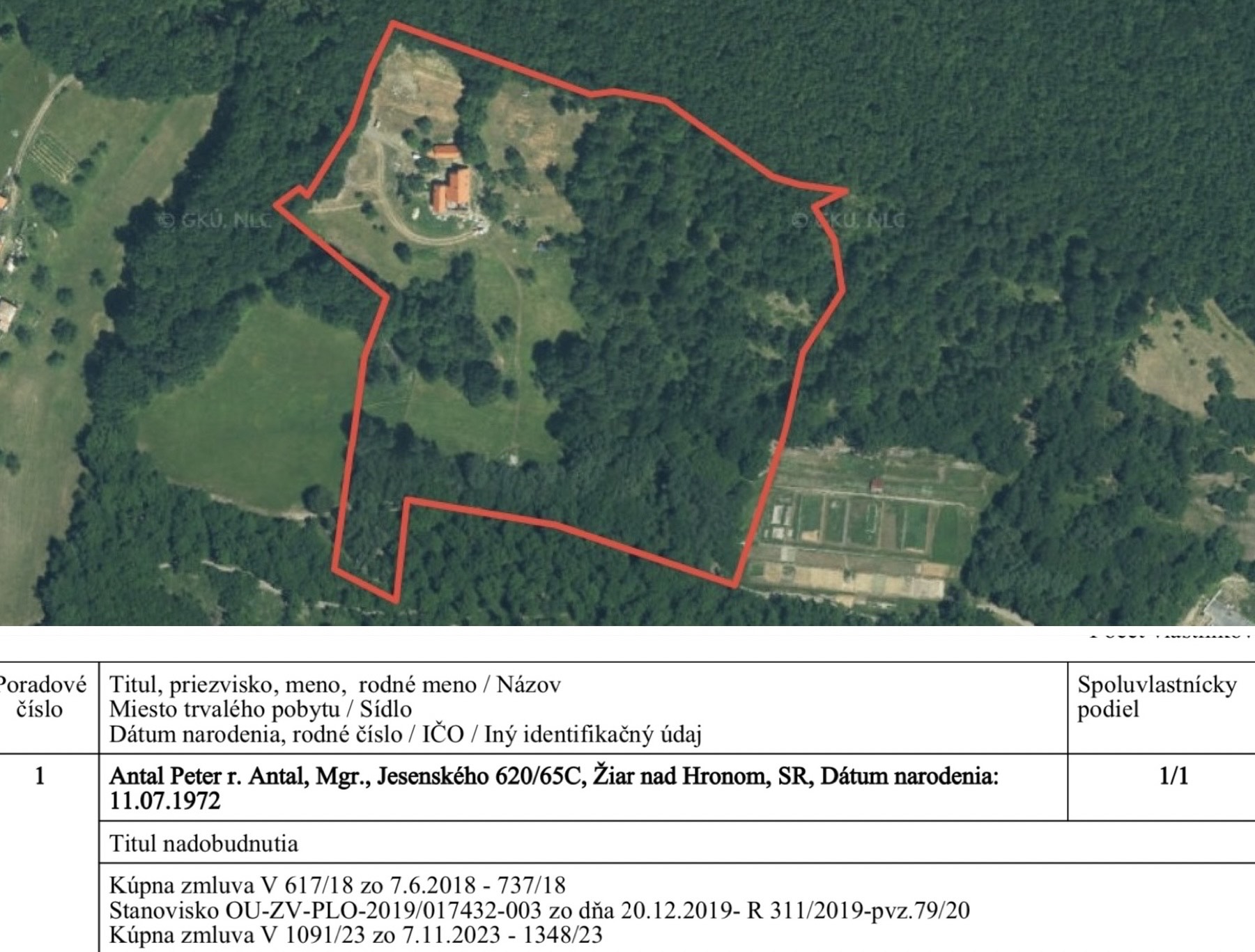 Viac ako 5 hektárový pozemok s veľkou haciendou vo vlastníctve Petra Antala leží v oblasti Stará Hora 3 km od Krupiny a zvláštny nový zápis na LV5783/ zdroj: zbgis.skgeodesy.sk