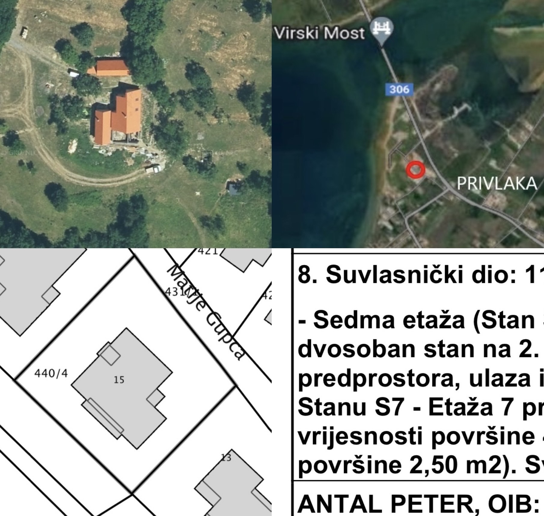 Nehnuteľnosti Petra Antala pri Krupine a v Chorvátsku, zápis v chorvátskom katastri/ zdroj: zbgis.skgeodesy.sk a katastrálna mapa Chorvátsko, chorvátsky kataster
