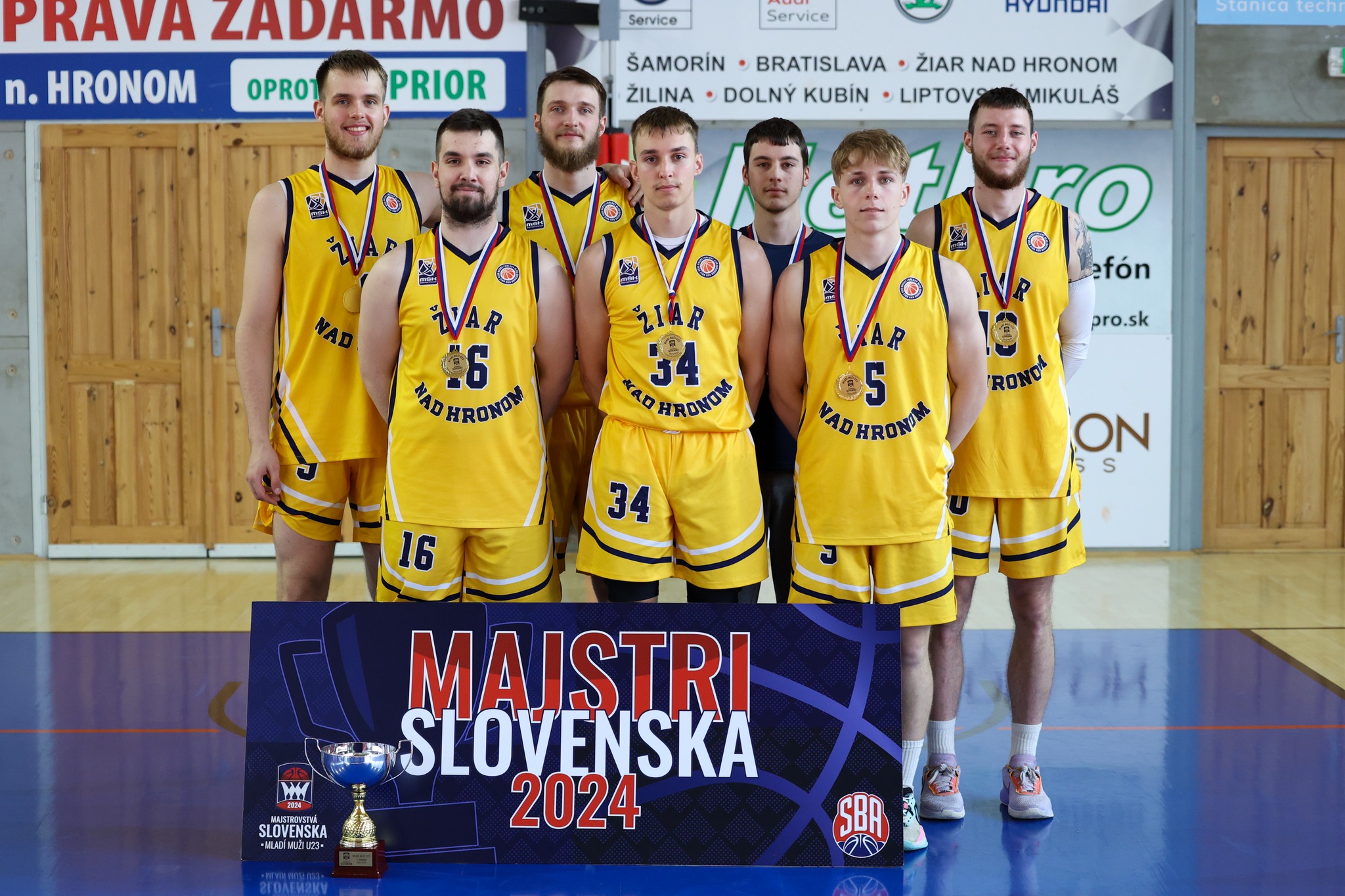 Hráči PATRIOTI LEVICE v žiarskych dresoch po skončení turnaja U23 v sezóne 2023/24, v tej dali nežiarčania až 75% všetkých bodov tímu / zdroj: FB ŠBK Junior Levice a štatistiky SBA