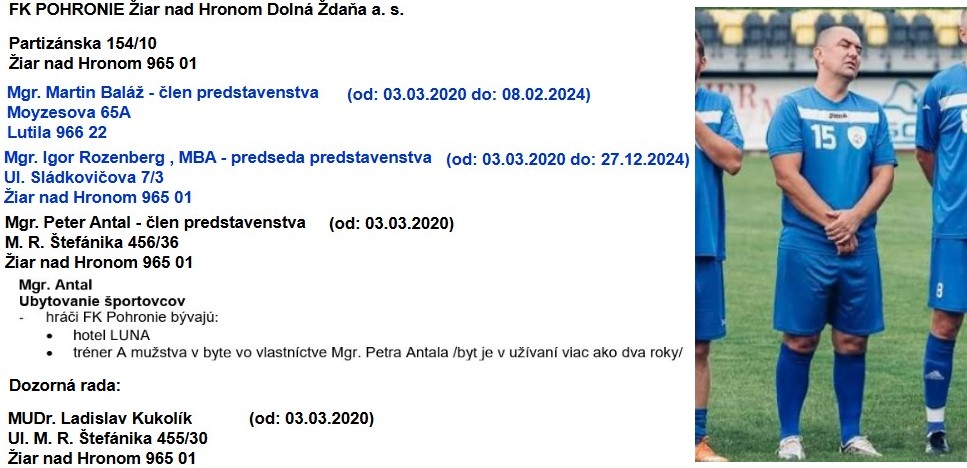 Peter Antal ako člen predstavenstva si tu len užil svoje okamihy slávy. Svoje fanúšikovské a hlavne finančné záujmy má v žiarskom hokeji a hlavne na žiarskom zimnom štadióne. Tu sa neuveriteľne strácajú státisíce eur z rozpočtu mesta. Ale aj vo futbale šikovne využil svoj vplyv a svojho bieleho koňa a viac ako dva roky (2020-2022) prenajímal pre potreby klubu byt vo svojom osobnom vlastníctve, na ktorom si udával trvalý pobyt ako primátor Žiaru nad Hronom, keď býval v Lutile. Dôkaz je na obrázku hore. Peter Antal vo svojom majetkovom priznaní na stránke NRSR príjmy z prenájmu bytu trénerovi FK POHRONIE za roky 2020 a 2021 NEUVIEDOL, takže v ňom ako verejný funkcionár preukázateľne KLAMAL.