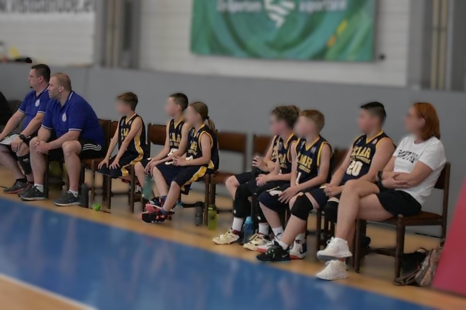 Na zápase minižiakov v Komárne, ktorý viedol športový riaditeľ klubu a tréner s najnižšou kvalifikáciou Ján Valent, si na lavičku k hráčom sadla úplne nezvyčajne manželka trénera, pani okresná prokurátorka/_zdroj: FB Basketbal Žiar nad Hronom