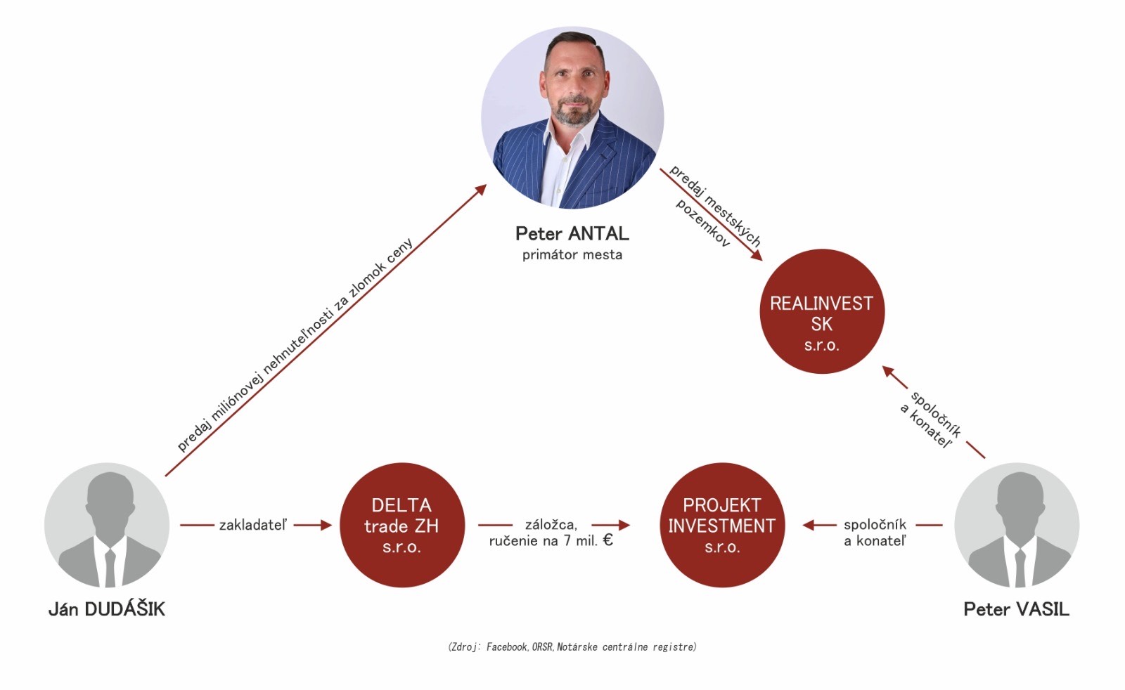 Do minulých, prebiehajúcich a budúcich obchodov za milióny Eur sa zapojilo viacero postáv a kruh v Žiari nad Hronom sa uzavrel. Vzťahy medzi nimi sme podrobne odhalili v článku: UNESENÉ MESTO, ČASŤ ŠTVRTÁ: SCHÉMA NAŠI ĽUDIA