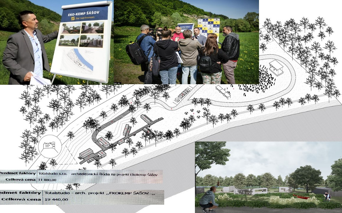 Prezentovanie projektu EKO – KEMP Šášov vedením mesta, ukážky štúdie projektu a faktúry za projekt/ zdroj: myziar.sme.sk, web mesta