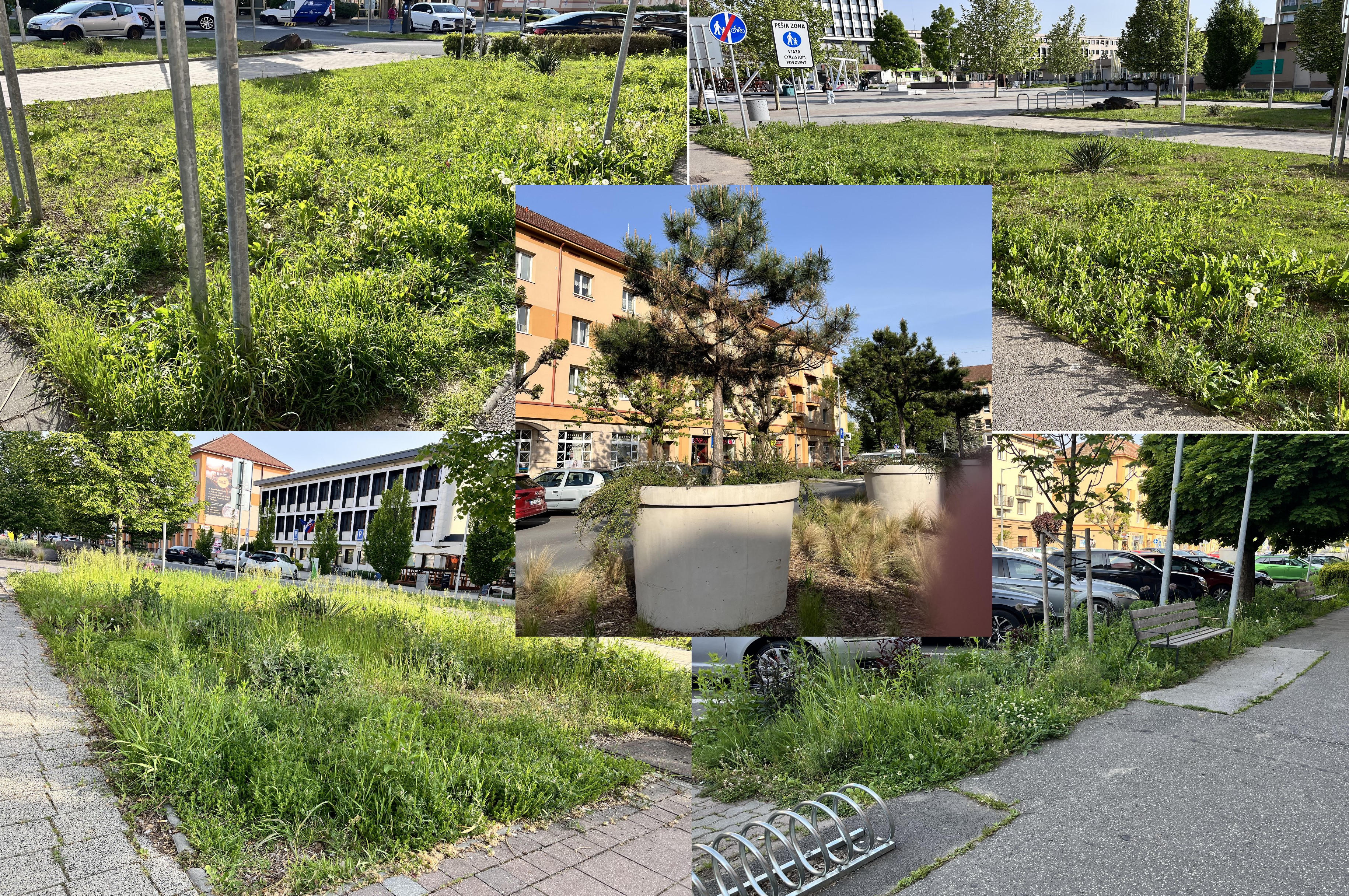 Kvetinové záhony na Námestí Matice slovenskej, vysadené za desaťtisíce eur v rámci projektu „Zazelenanie námestia“, ktoré slávnostne predstavil v roku 2018 primátor mesta ako „kvitnúce trvalky vysadené tak, aby bol záhon zakvitnutý vo väčšine roka. Budú to napríklad levanduľa, šalvia, zvonček, tulipán, rododendron, juka, astra, krokus či rôzne trávy.“ My môžeme prezradiť už verejné tajomstvo: záhony sa majú pomaly a nenápadne zmeniť na trávu, ktorá sa dá jednoducho pokosiť a zúfalé nájazdy zúfalých pracovníčok z mestských Technických služieb na boj s burinou okolo trvaliek sú už minulosťou. 5400 ks rastlín, ktorými sa primátor chválil, prerastie zelenou trávou. Ako dopadnú borovice v „guliverovských kvetináčoch“, vystavené v zime mrazu a v lete tropickému teplu, naznačuje prvá z nich, pomaly usychajúca...