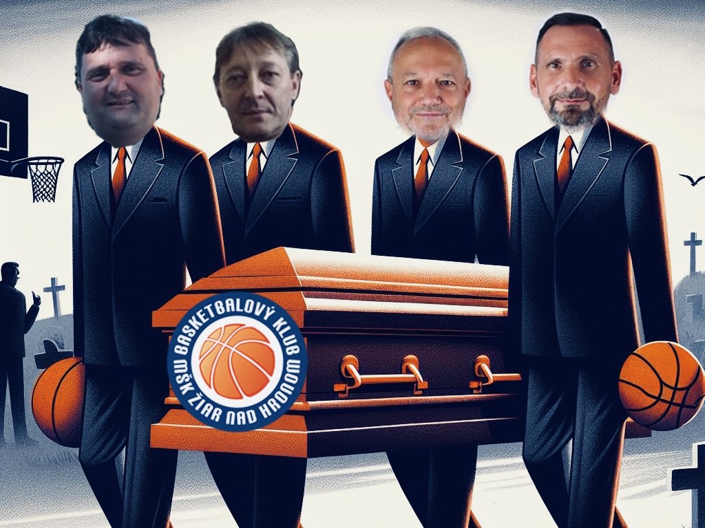 Titulný obrázok: Fikcia: mocní z vedenia MŠK ako hrobári žiarskeho basketbalu/ zdroj: AI, web mesta, reportáž TV Noviny Markíza, Pravda o Žiari