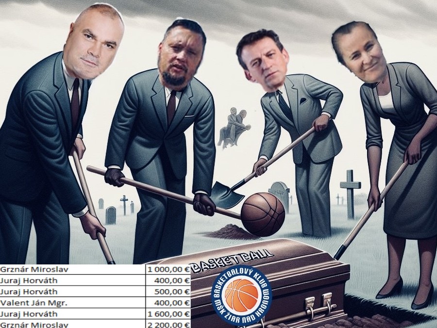 Fikcia: babráci z vedenia klubu ako hrobári žiarskeho basketbalu a odmeny vedenia klubu za mesiac december 2024/_zdroj: AI, web mesta, FB Basketbal Žiar nad Hronom, Pravda o Žiari a mskziar.sk