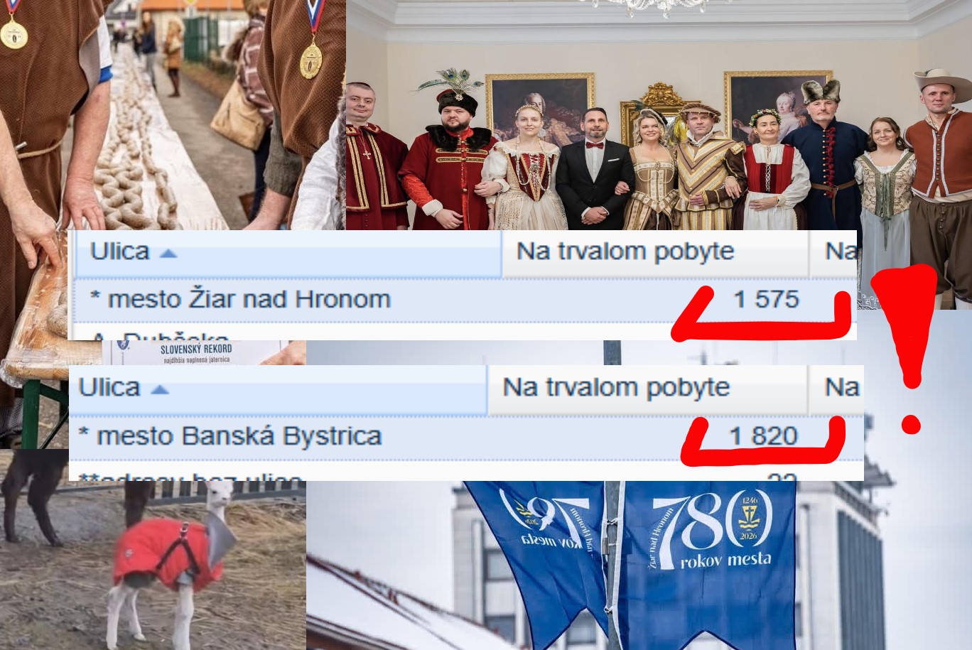 Zverejňujeme šokujúce číslo: V Žiari nad Hronom pri počte 16 516 obyvateľov (údaj k 26.2.2026) až 1 575 občanov (údaj k 26.2.2026) má uvedený trvalý pobyt na „Mesto Žiar nad Hronom“. Takže až 9,5 % Žiarčanov nemá trvalý pobyt na konkrétnej adrese, ale sú evidovaní ako občania mesta na Mestskom úrade v Žiari nad Hronom.